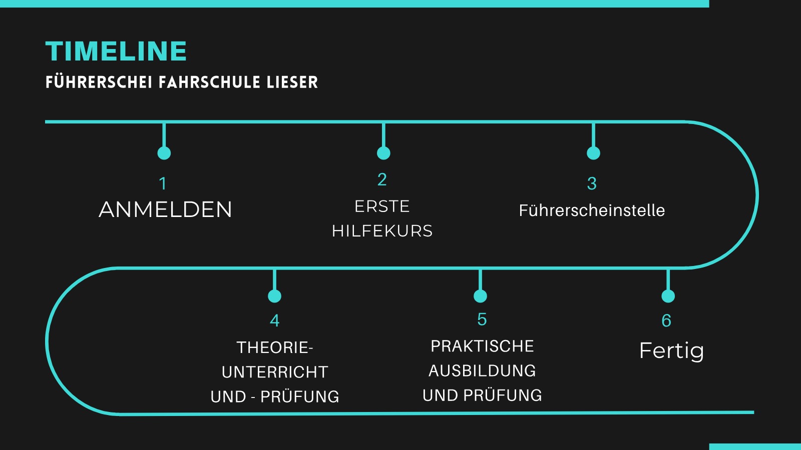Die praktische Ausbildung beinhaltet die Stufen Grundstufe, Aufbaustufe, Leistungsstufe, Landstraße, Autobahn, Fahren bei Dunkelheit und die Reifestufe. Anschließend ist die praktische Prüfung. Du bist jetzt selbstständig in der Lage mit einem Auto am Verkehr teilzunehmen. Du bist jetzt mobil und ein Stück weit unabhängiger.